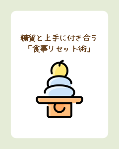 お餅を食べる際、真っ先にお餅に箸を伸ばしていませんか?空腹状態で糖質の高いお餅を食べると、血糖値が急激に上がり、インスリンが過剰に分泌されて体に脂肪を溜め込みやすくなります。これを防ぐカギは、食事の「組み立て方」にあります。