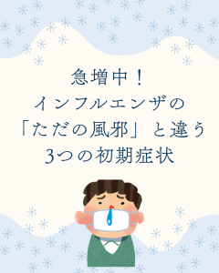 今回は、インフルエンザの初期に現れる、風邪とは決定的に違う**「3つの特徴的な症状」**に焦点を当て、早期に適切な対処をするための知識をお届けします。